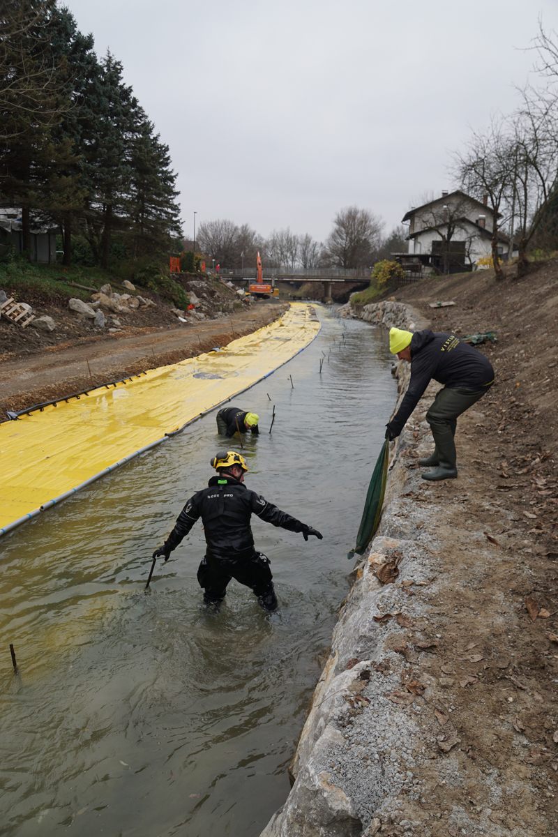 « Sans Water-Gate©, nous ne pouvions tout simplement pas intervenir. Les contraintes liées à la reproduction des poissons nous interdisent toute modification du lit de la rivière. En créant une séparation hydraulique, nous pouvons travailler au sec tout en respectant l’environnement. Le système fonctionne parfaitement. » — Matjaž Zupanc, CEO Hidrotehnik