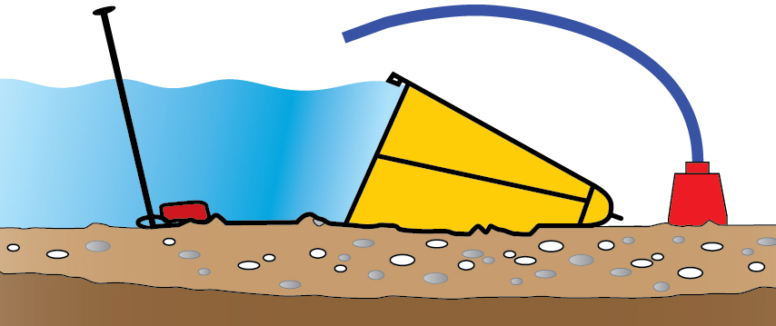 Alavirran kassakaappi voi yleensä olla alempi. Ylävirran virtaus voidaan ohjata putken läpi, joka on asetettu joustavien kasettipatojen alle, tai pumppujen kautta. - Asennus seisovaan veteen